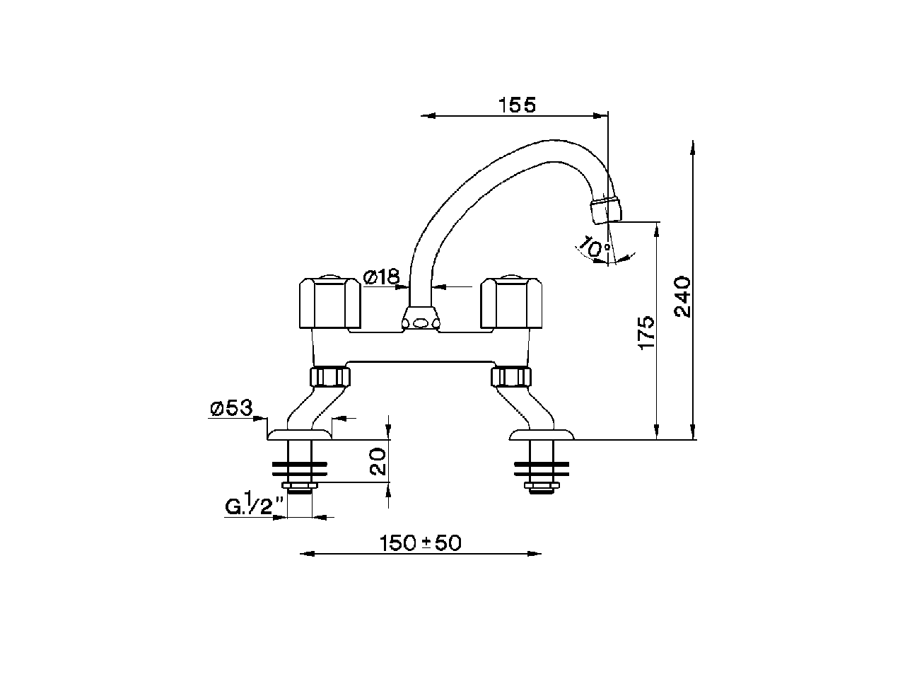 2-holes Washbasin mixer,without automatic pop-up waste,without handles,swivel spout