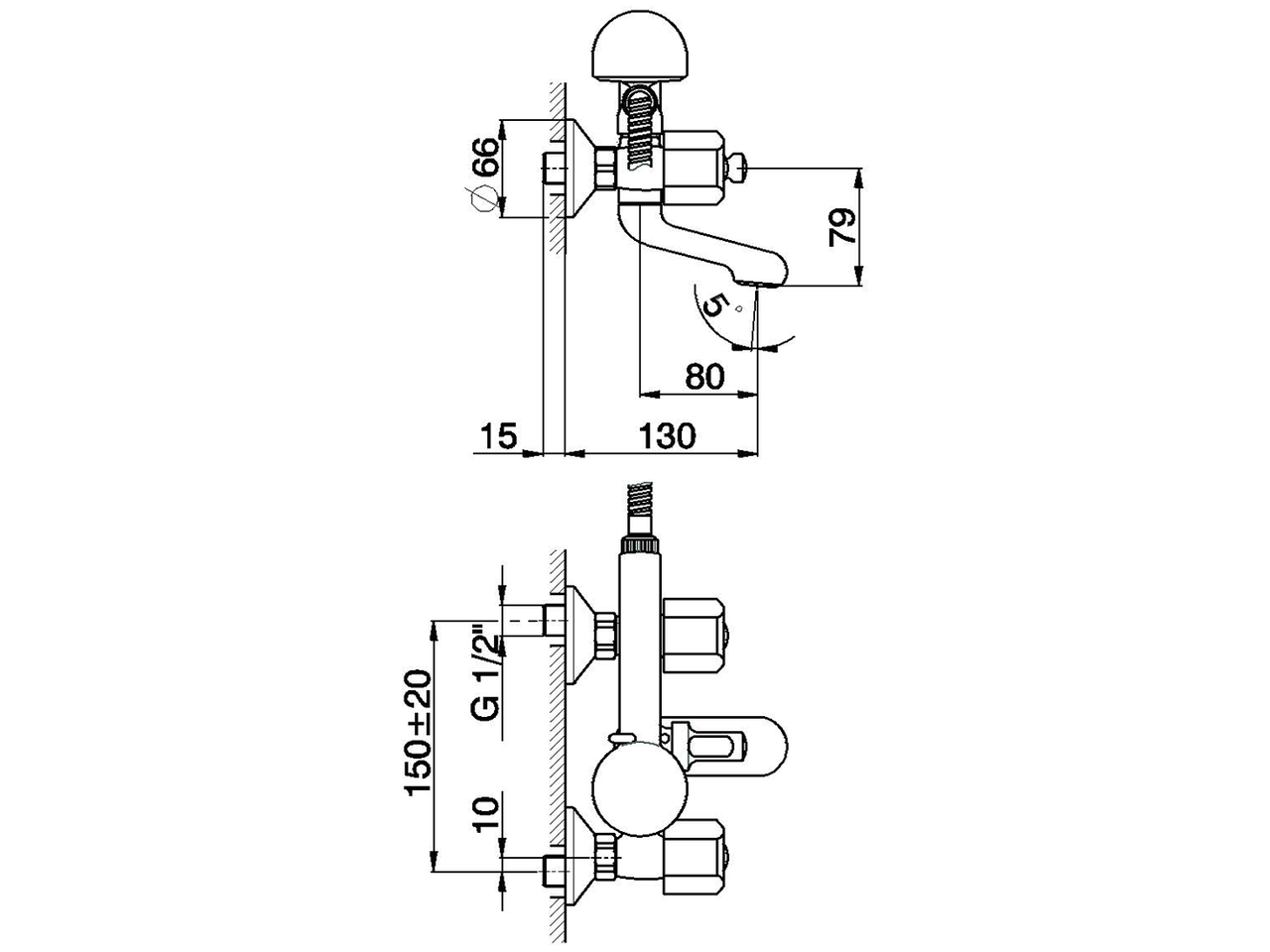 Bath mixer, with shower set,Globo D.63 mm ABS one spray handshower,150 cm brass flexible hose,without handles