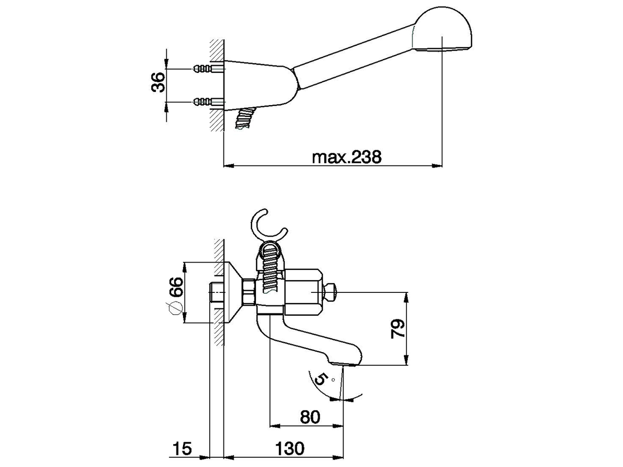 Bath mixer, with shower set,wall mounted adjustable handshower bracket,Globo D.63 mm ABS one spray handshower,Brass 150 cm flexible hose,without handles