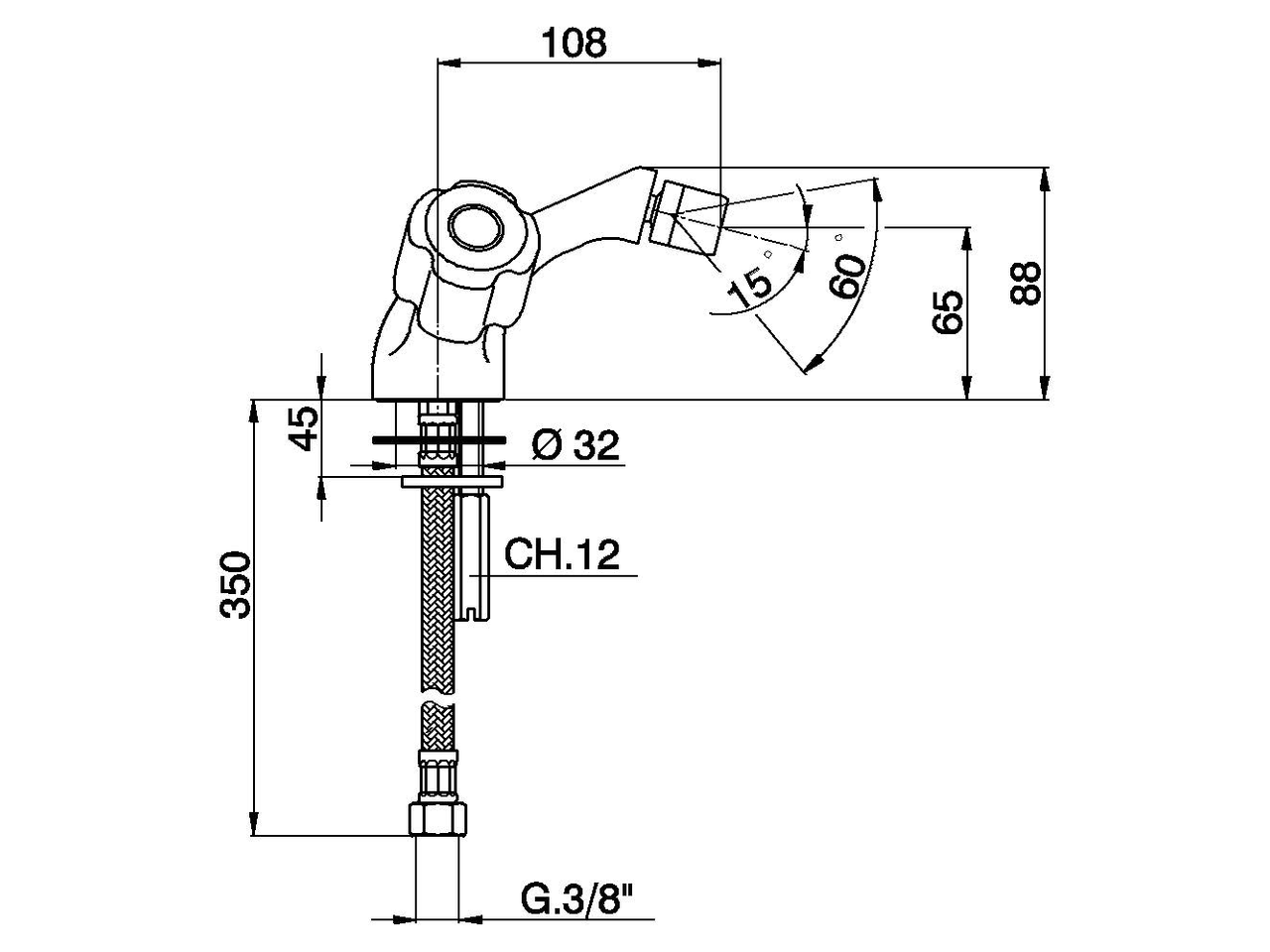 Bidet mixer,without automatic pop-up waste,G.3/8" stainless steel flexible hose,without handles