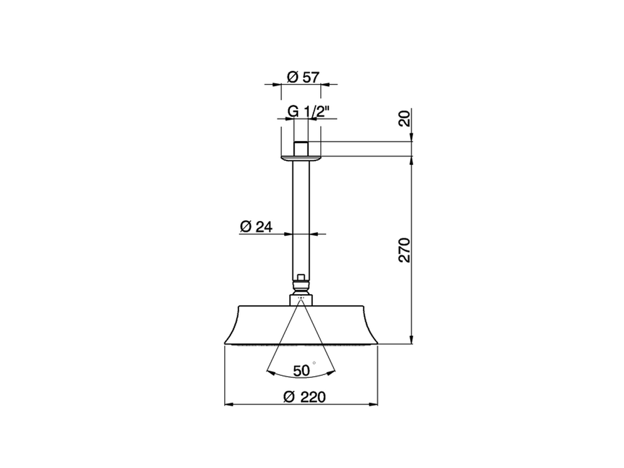 Ceiling shower arm with showerhead,220 mm Brass round showerhead,270 mm shower arm