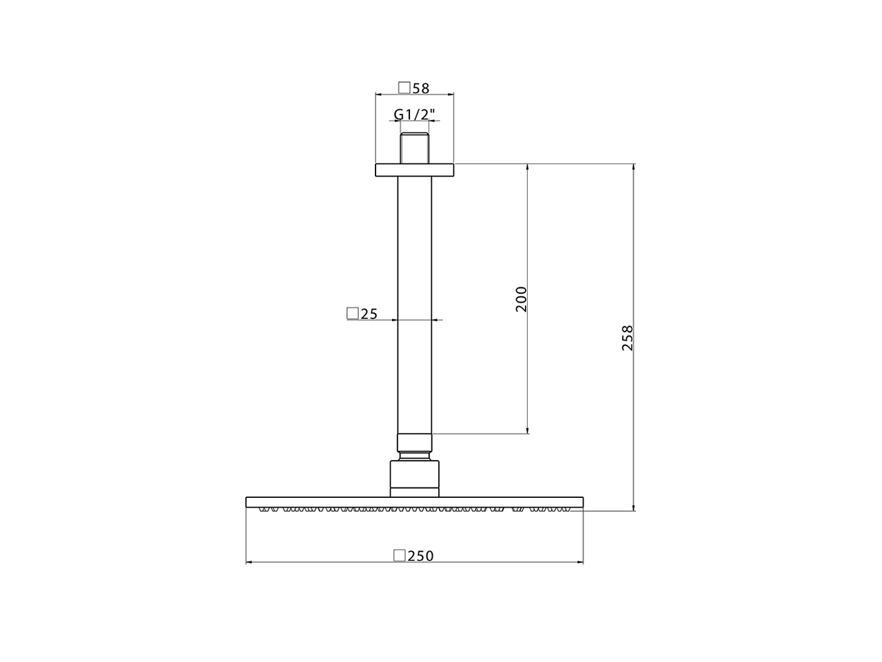 Ceiling shower arm with showerhead,250x250 mm 8 mm thick BRASS square showerhead,200 mm shower arm