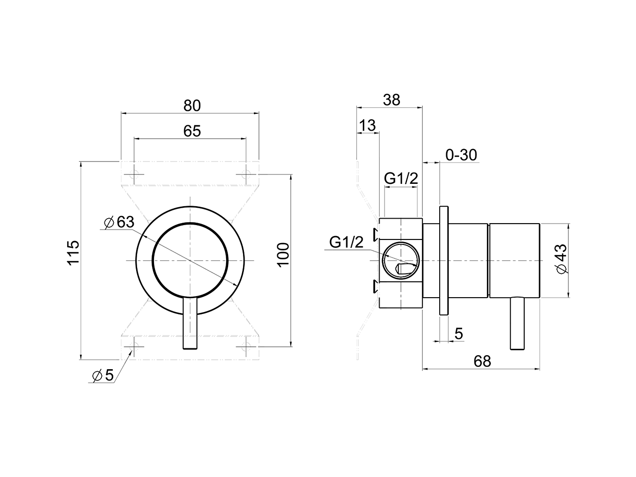Concealed 2-outlet diverter,1/2"F outlets,Inox AISI 316L