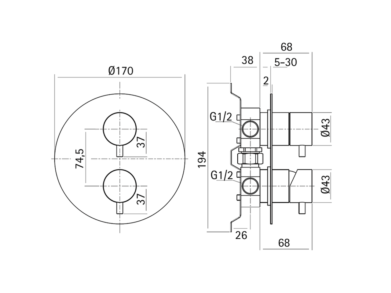 Concealed single lever bath-shower valve,with concealed part,2-Way rotating diverter,Inox AISI 316L