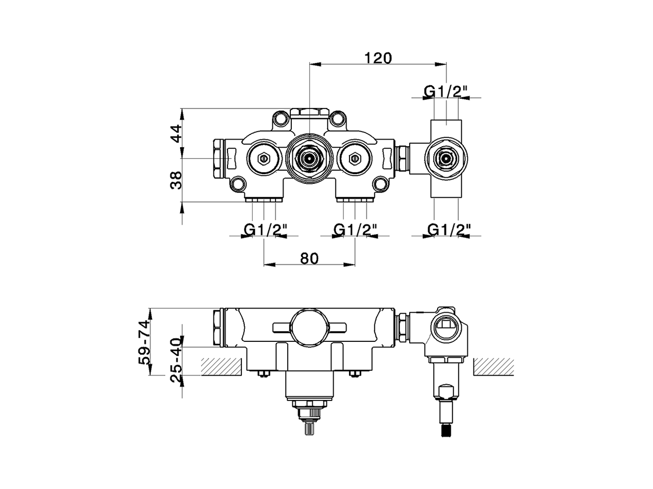 Concealed thermostatic shower mixer, 2-outlet CONCEALED_ZB019140