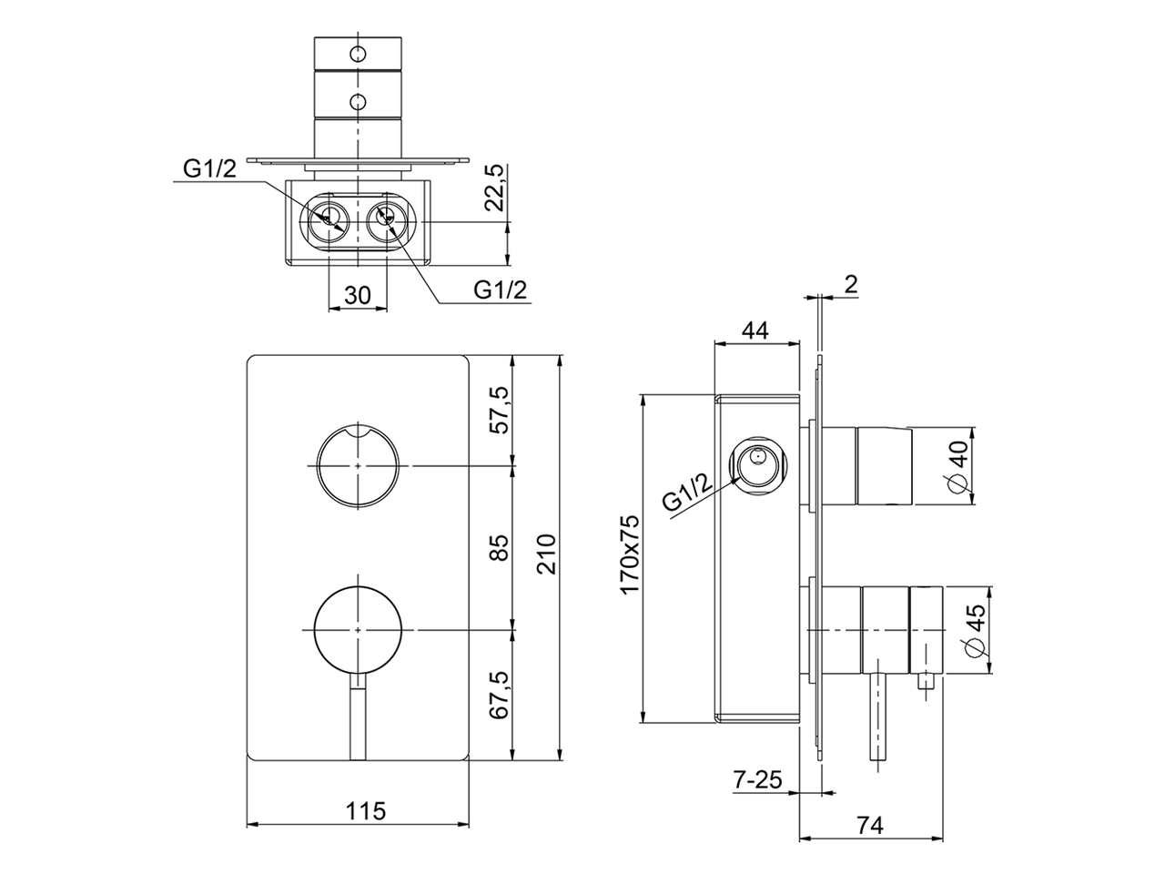 Concealed thermostatic shower valve, 2-outlet LYNOX_LX008104
