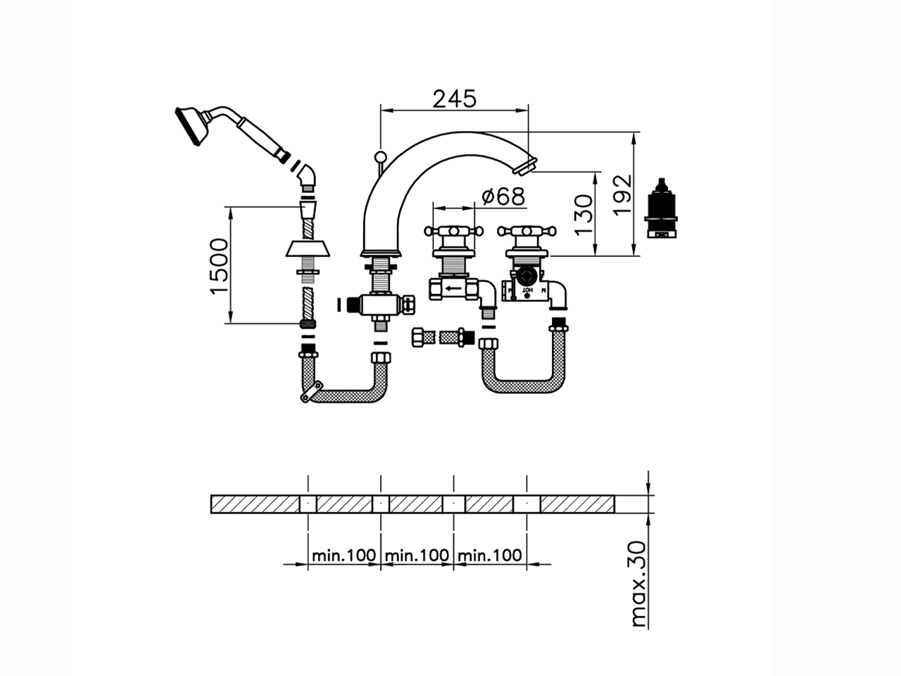 Deck mounted, 4-holes, thermostatic bath mixer VICTORIAN_VTT76010