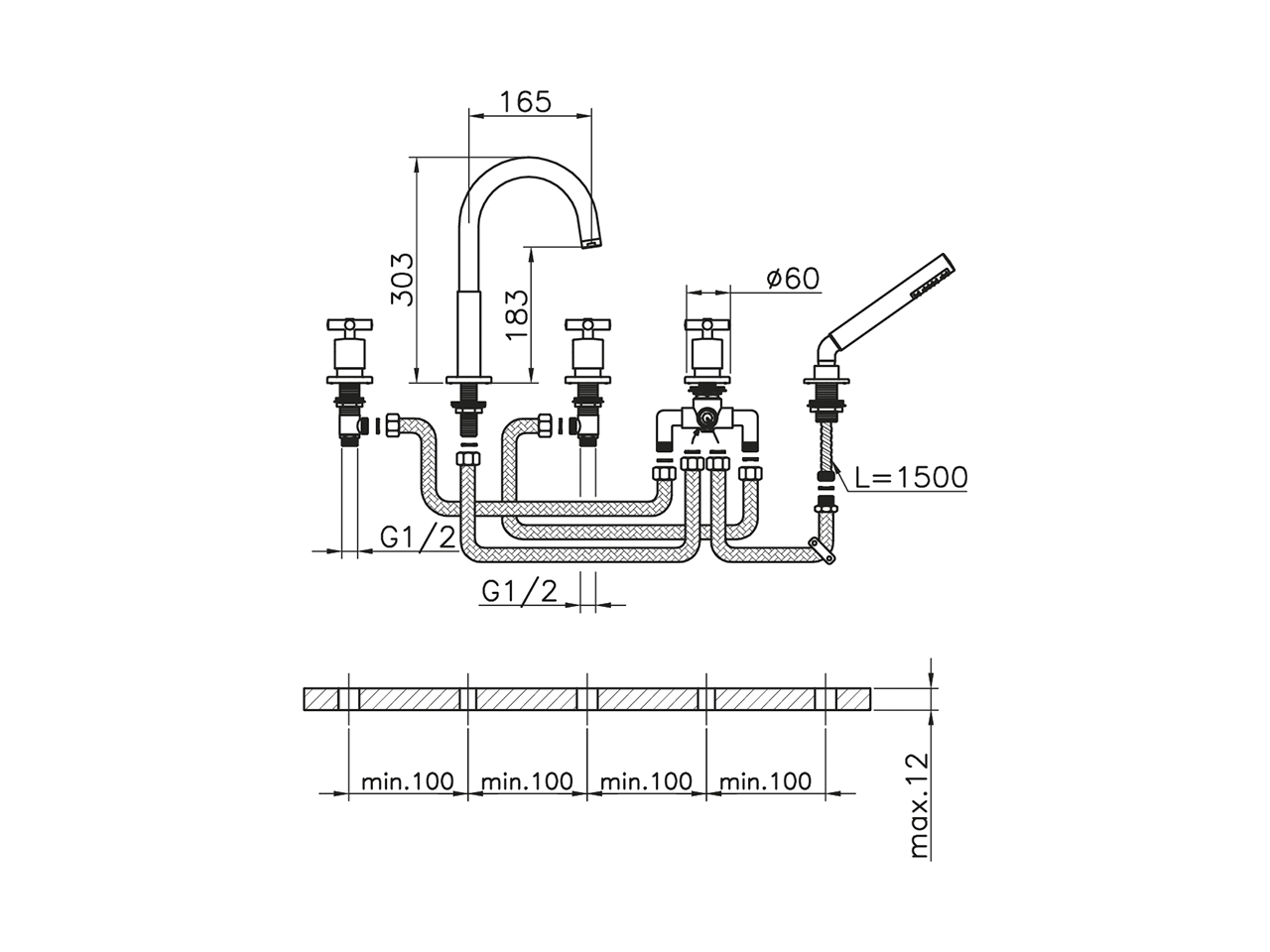 Deck-mounted 5-hole bath mixer SUITE_SU000260