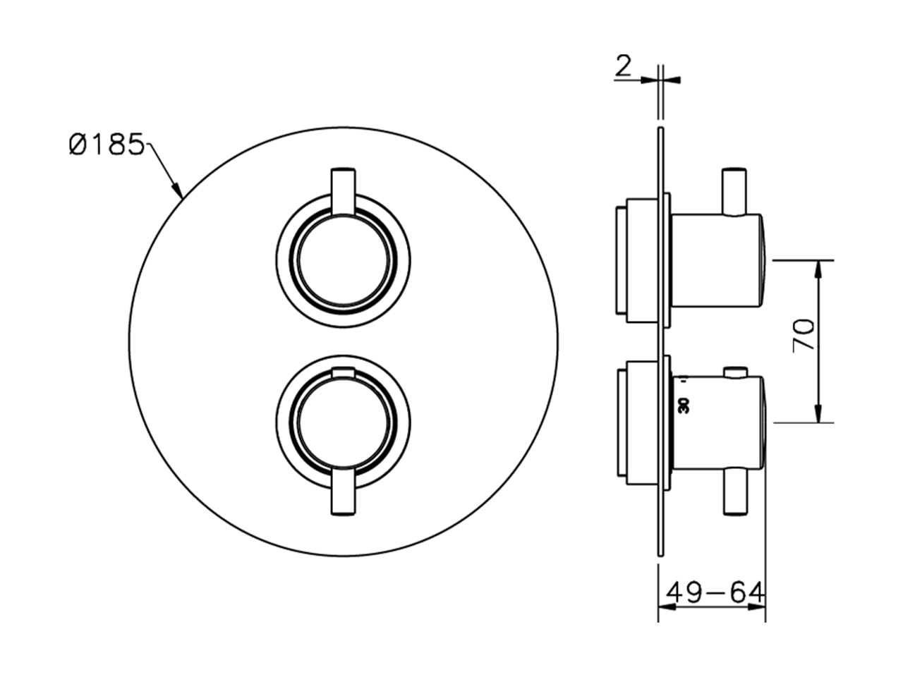 Exposed part for 3-outlet thermostatic mixer NUOVA KIRUNA_K2018200 - v1