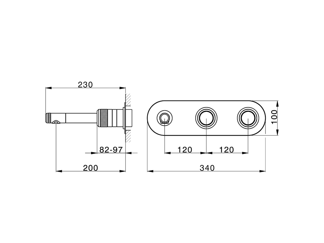 Exposed part for con.thermo. bath mixer, 2-outlet CHRONOS_CR019340