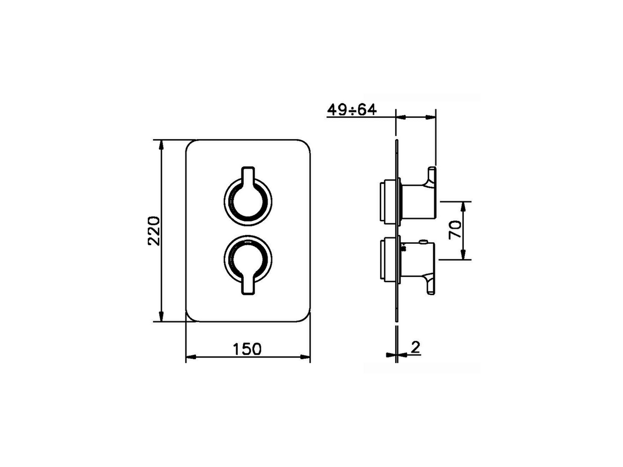 Exposed part for con.thermo.shower valve, 2-outlet SOFT_SF018100