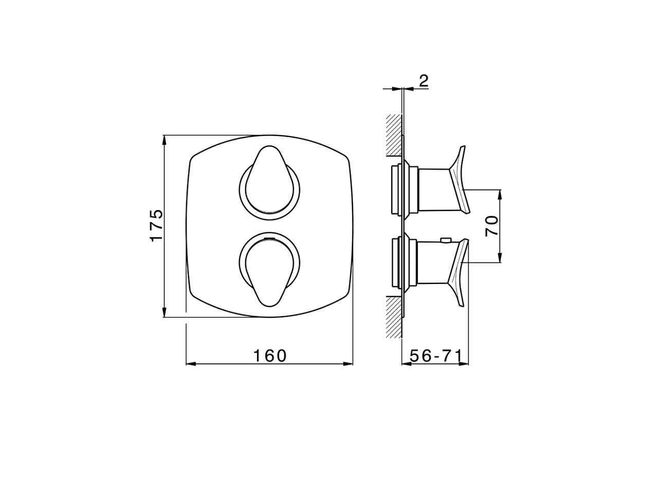 Exposed part for con.thermo.shower valve, 2-outlet THERMO_HC018100 - v1