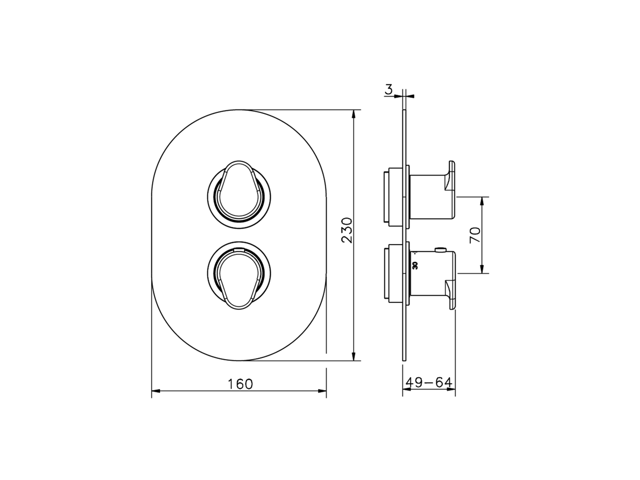 Exposed part for con.thermo.shower valve, 2-outlet THERMO_LY018100