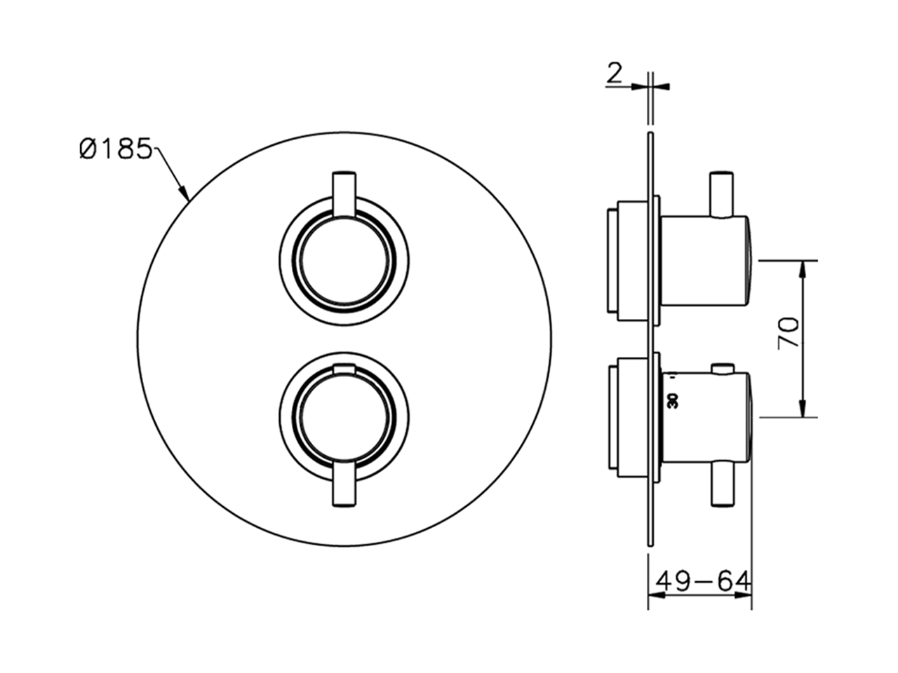 Exposed part for con.thermo.shower valve, 2-outlet THERMO_MT018100 - v1