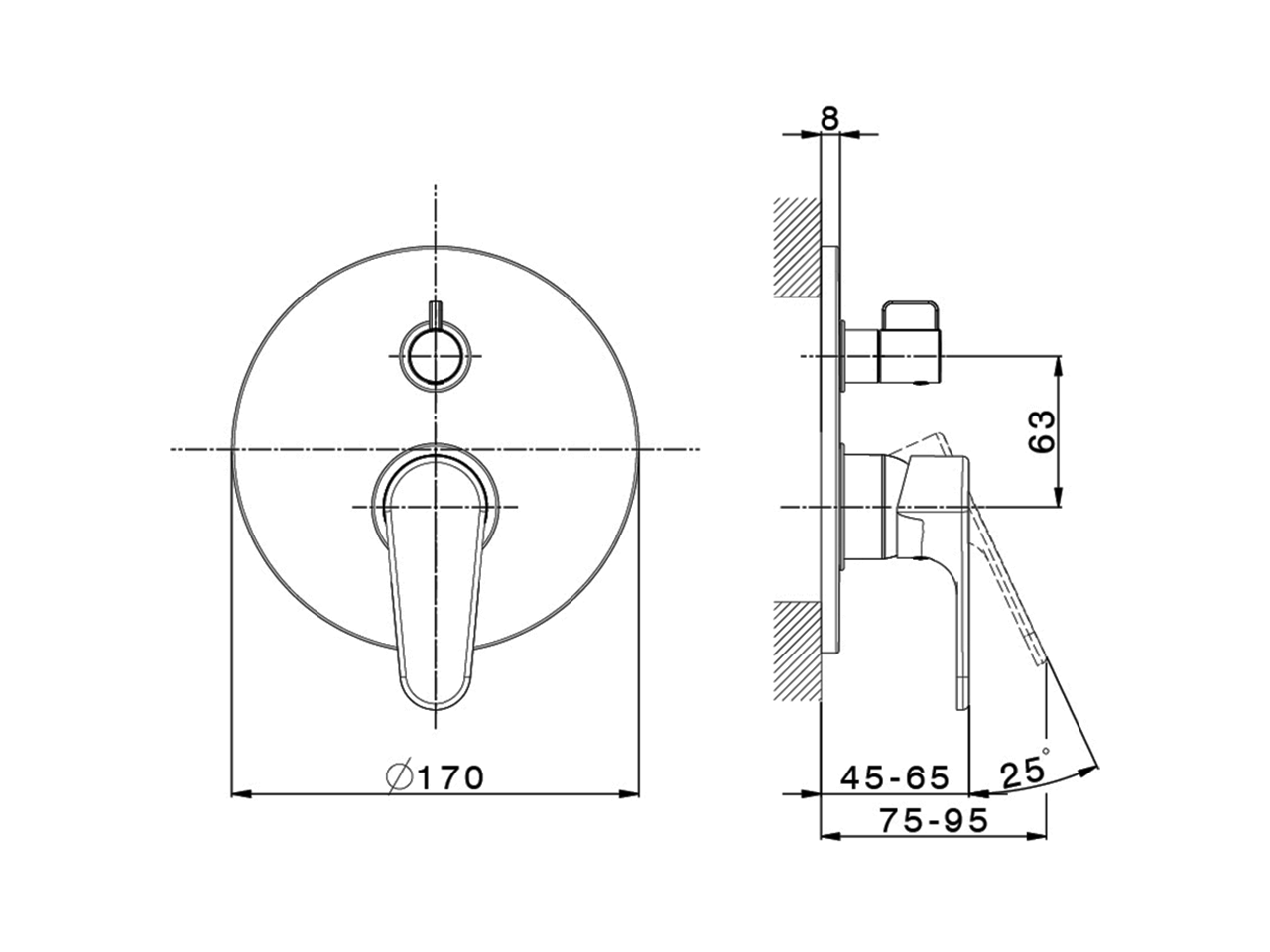 Concealed parts required for installation.