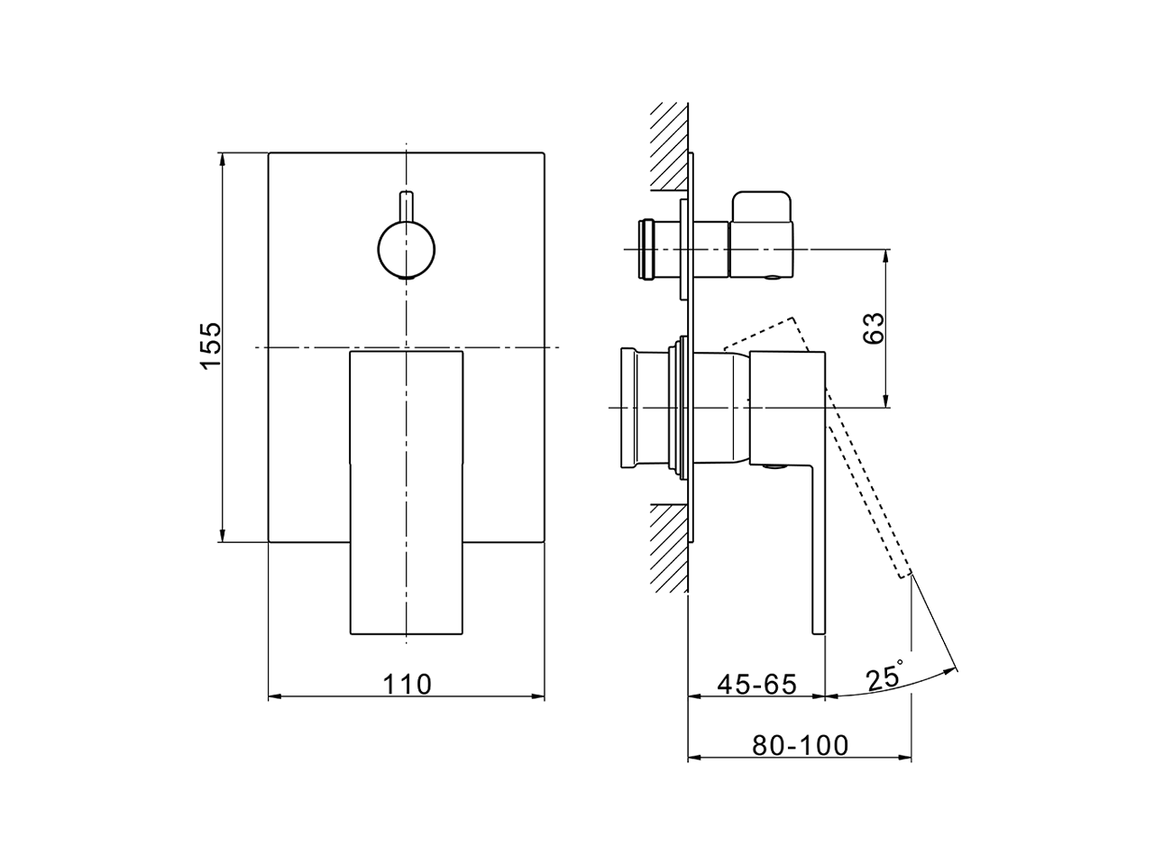 Exposed part for concealed 2-outlet mixer,2-Way rotating diverter,without concealed part,for item Easy-Box ZB000230