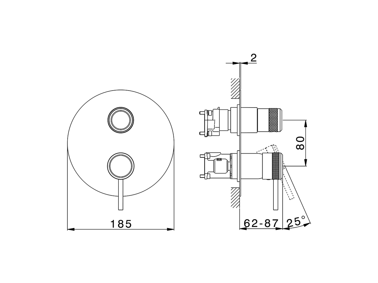 Exposed part for Single Lever One Box Valve,with 2-3 outlet diverter,Minimum depth of installation: 67 mm,without concealed part,for items ZB00B030-ZB00B031
