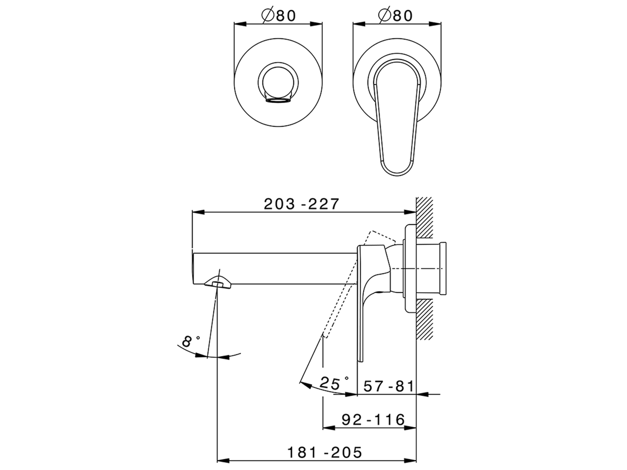 Concealed parts required for installation.