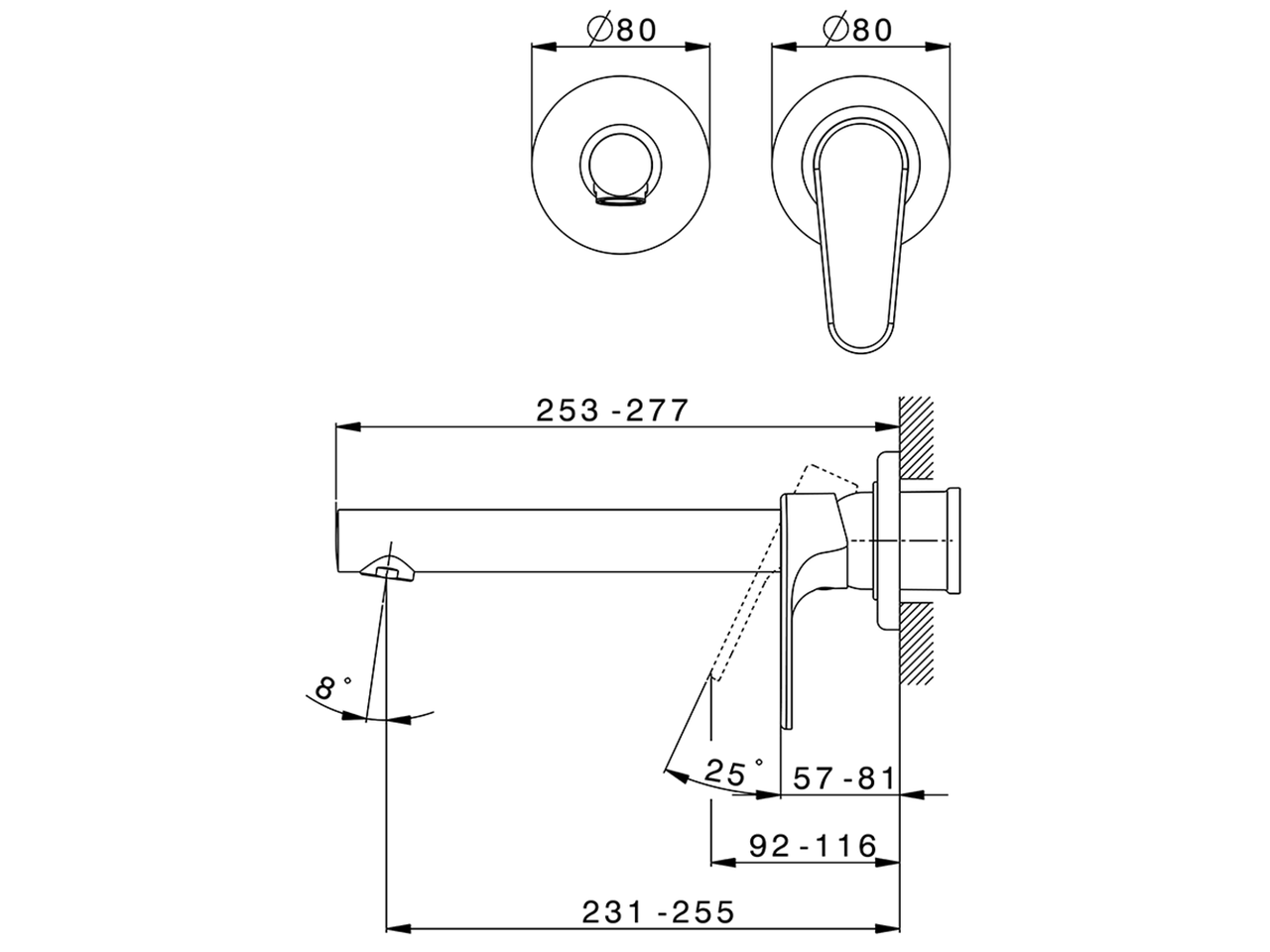 Exposed part for single lever washbasin valve,without concealed part,spout L.250 mm,for item Easy-Box ZB002450 and art.ZB025510