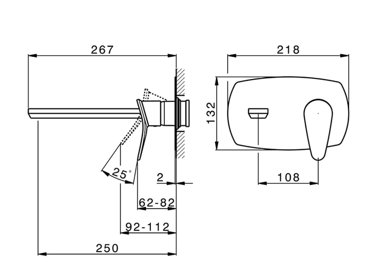 Exposed part for single lever washbasin valve,without concealed part,spout L.250 mm,for item Easy-Box ZB002450 and art.ZB025510