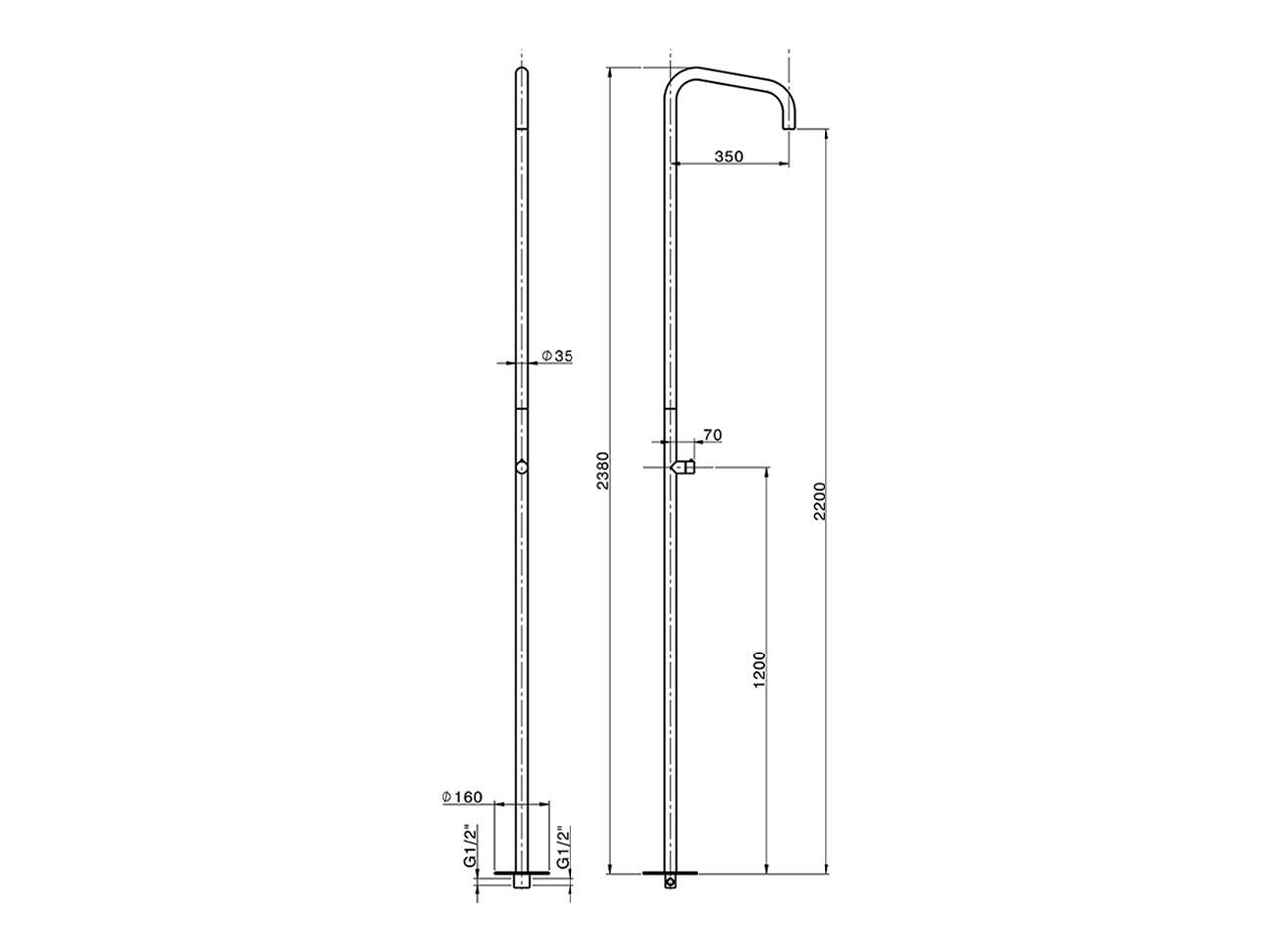 Free Standing Progressive Shower Column,for Indoor/Outdoor use,with rain spray aerator,INOX AISI 316L