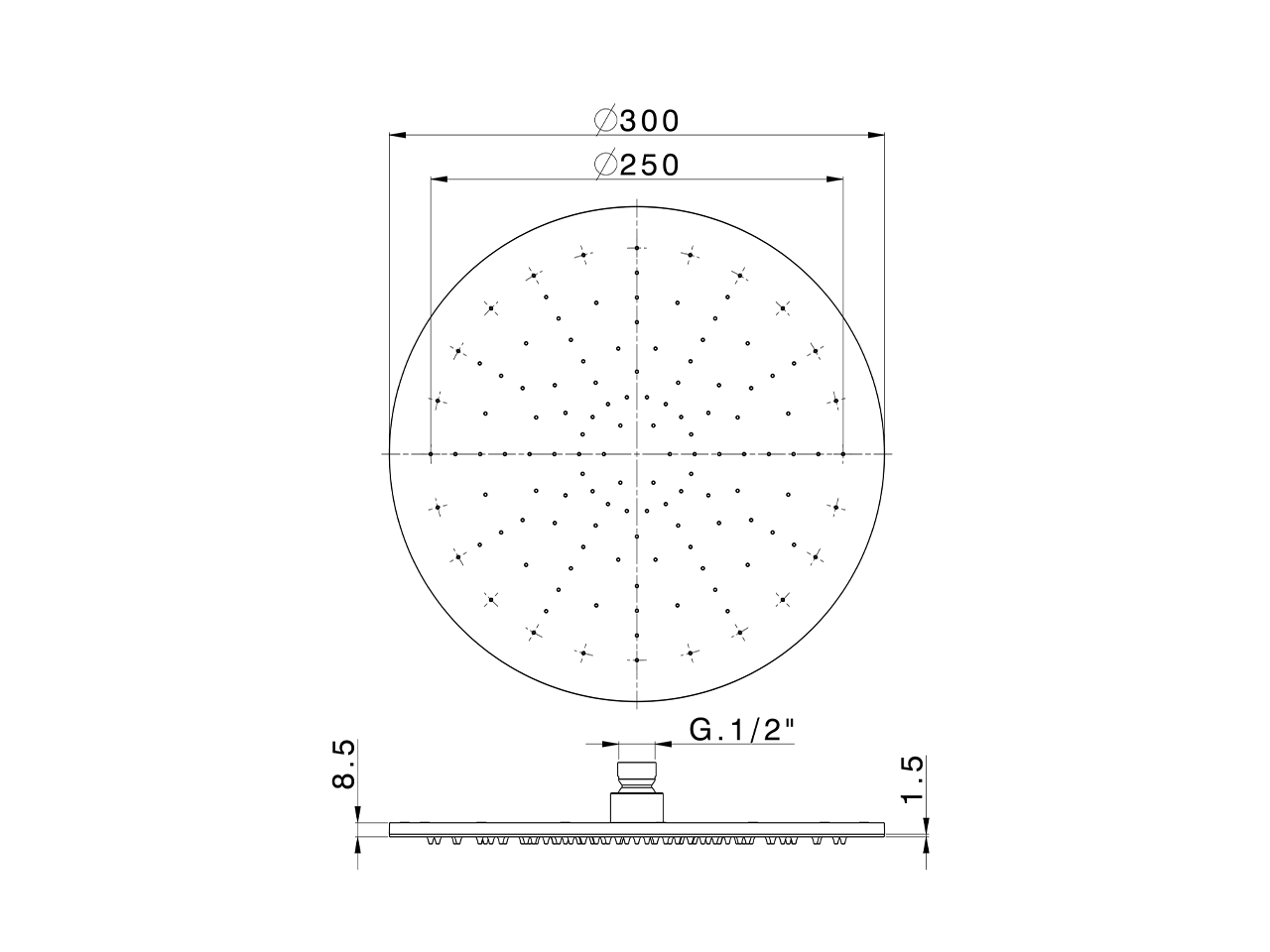 Ø 300 mm inspectable arm showerheads,rain function,9 mm thick, Stainless Steel AISI 304