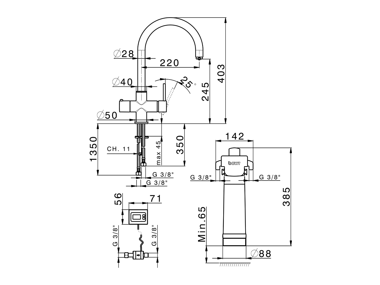 PURE Single Lever Sink Mixer,swivel spout,separated water supply: filtered and mains water,purified water opening control,BWT filtration set consisting of:,- filter litre counter for filter monitoring,- BWT filter head,- BWT 'BestTaste' filter (10,000 litres),activated carbon eliminates unpleasant odour&taste,particles filtration, heavy metal reduction
