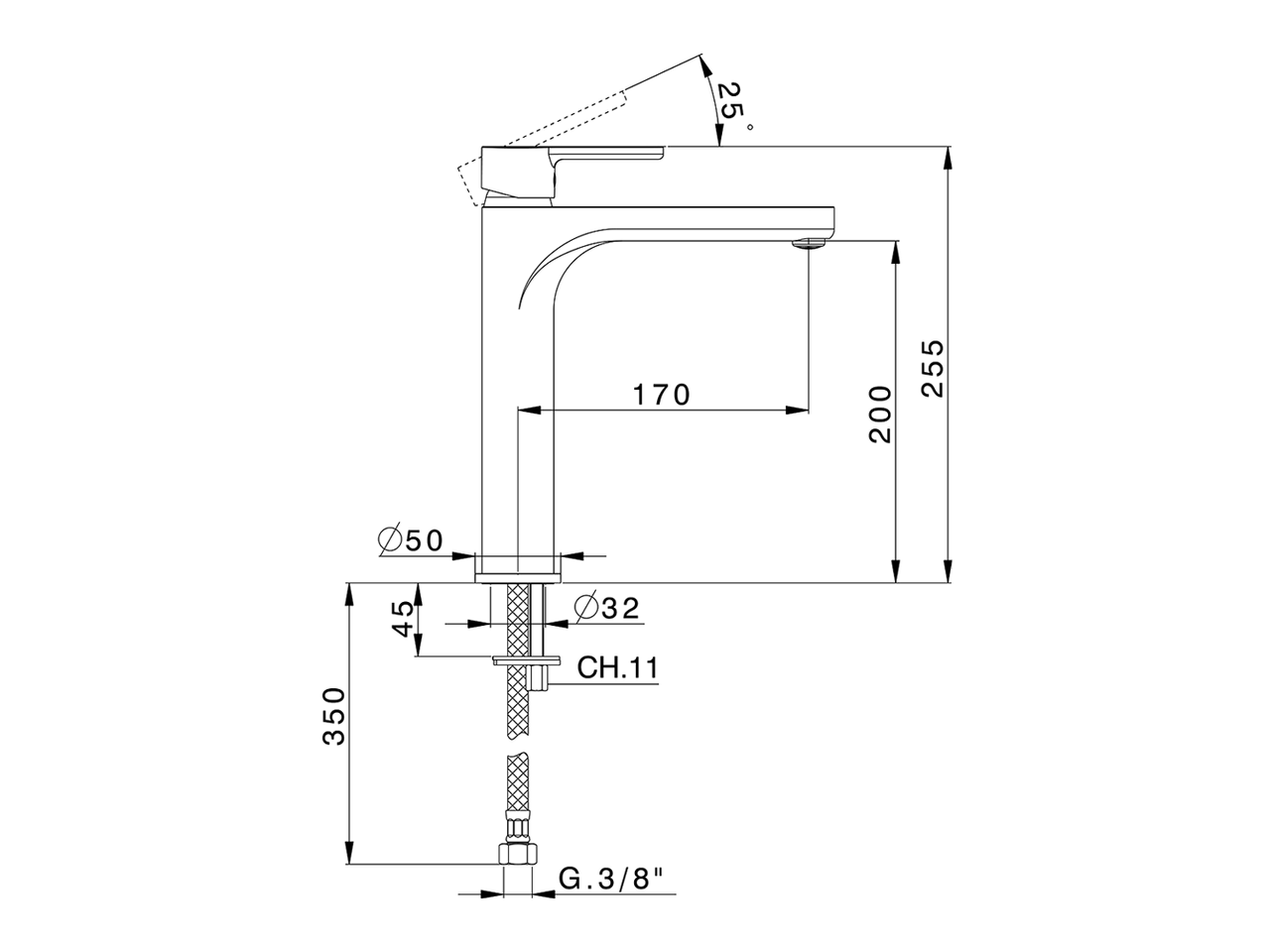 washbasin mixer- tall version - EnergySave,without automatic pop-up waste,G.3/8" stainless steel flexible hoses