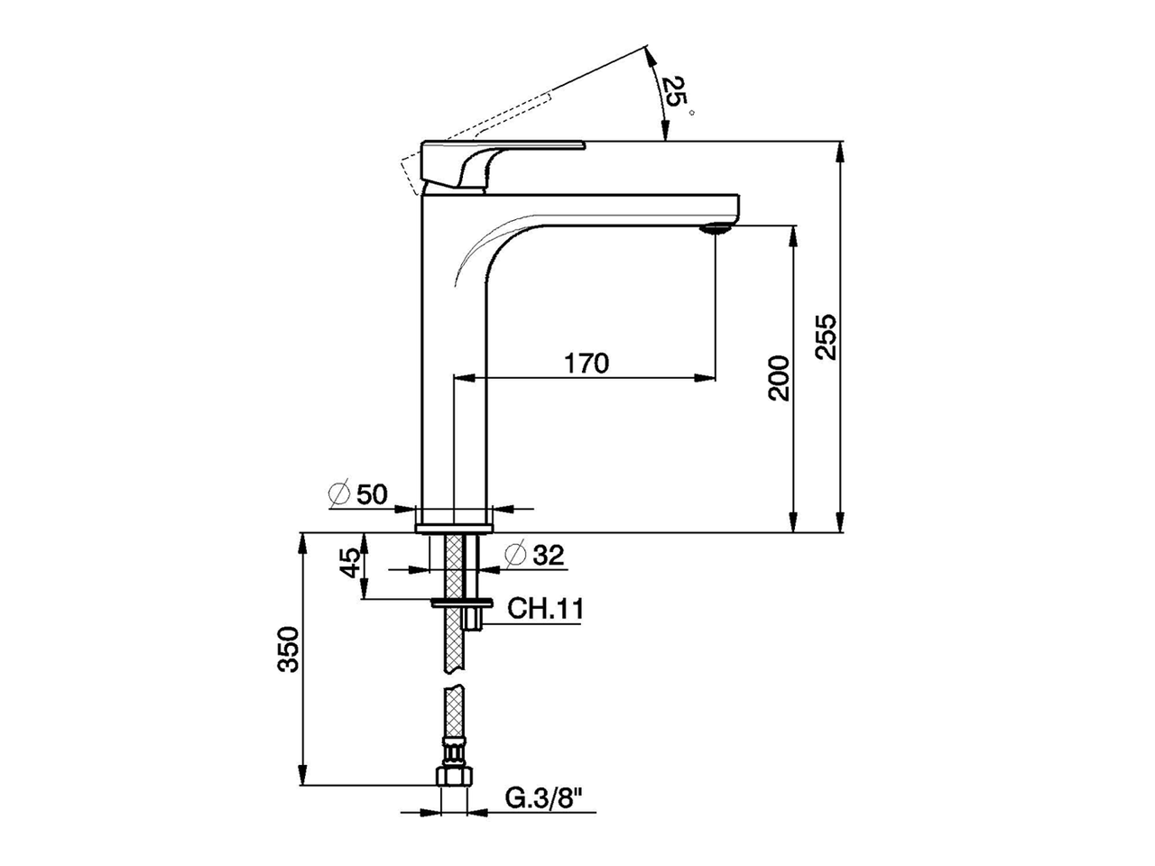 washbasin mixer- tall version - EnergySave,without waste,G.3/8" stainless steel flexible hoses