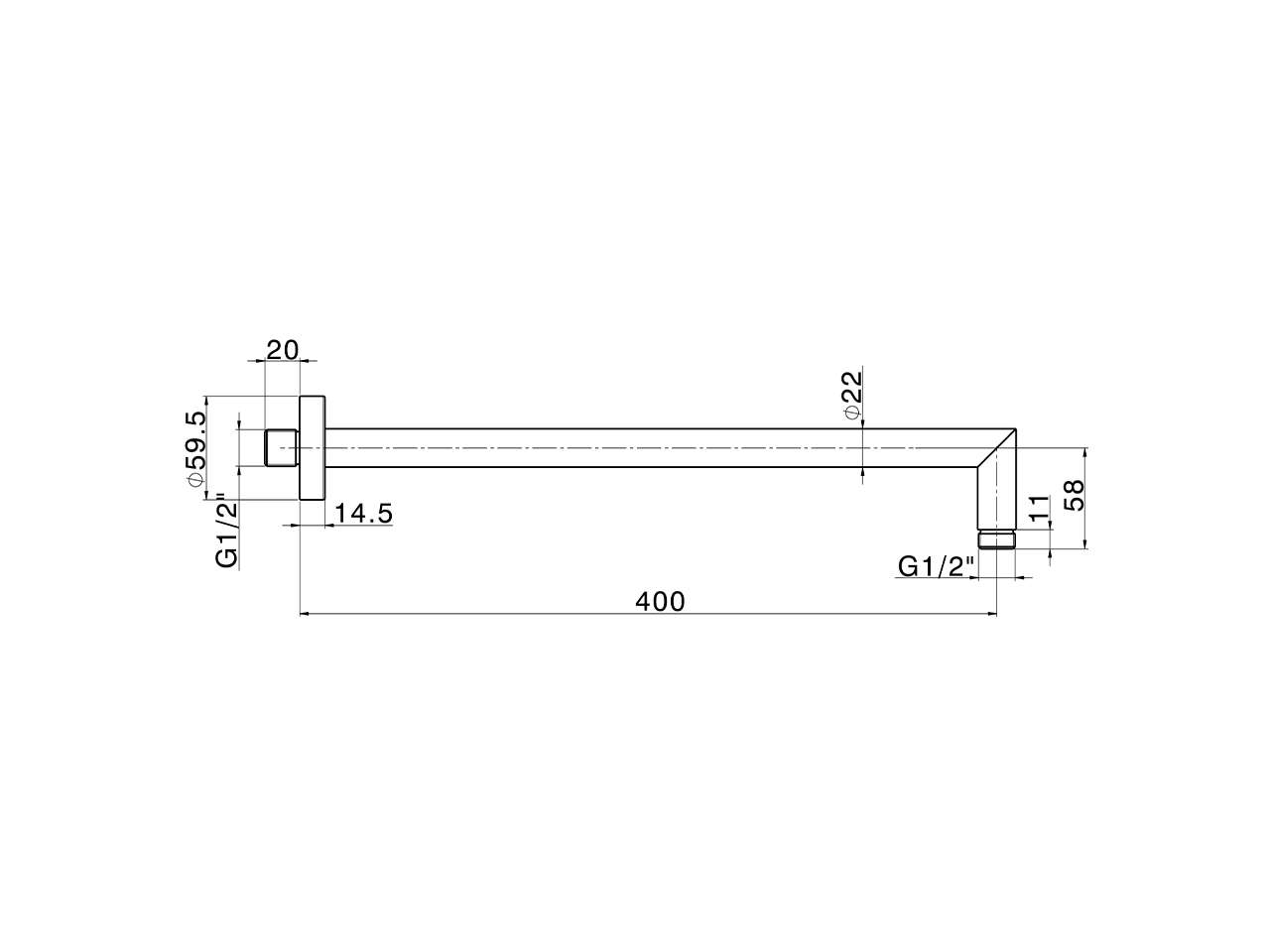 Shower arm,400 mm lenght D.20,5 mm,Brass