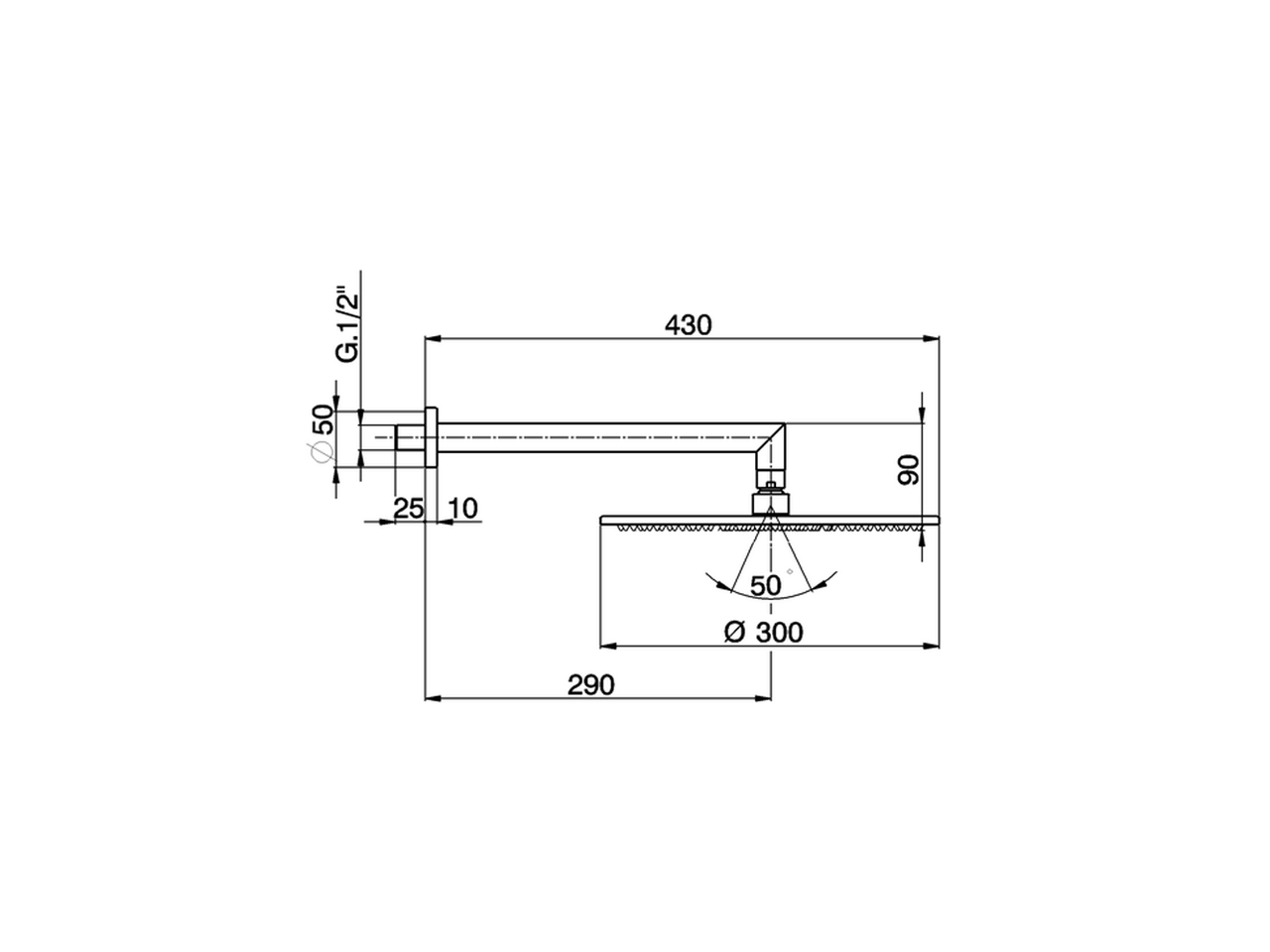 Shower arm with showerhead,300 mm Brass Round 7 mm thick Shower Head,290 mm Shower Arm