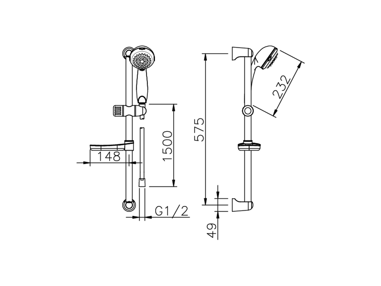 Shower set,57 cm Sliding rail bar with sliding bracket,5 Sprays Handshower,150 cm Brass flexible hose