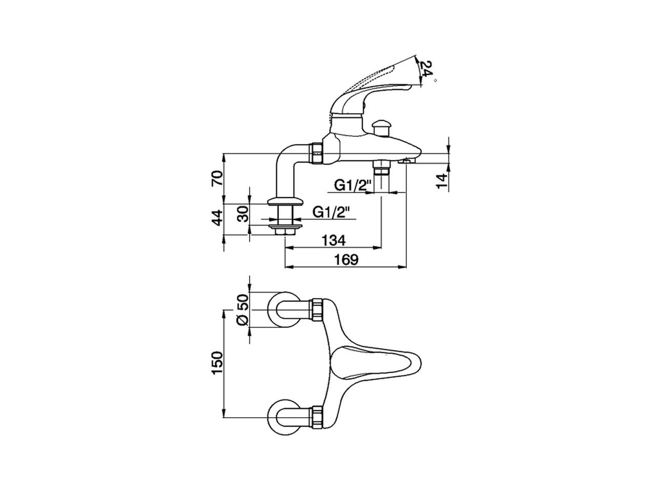 Single lever bath mixer,without shower set,1/2" M flexible connection