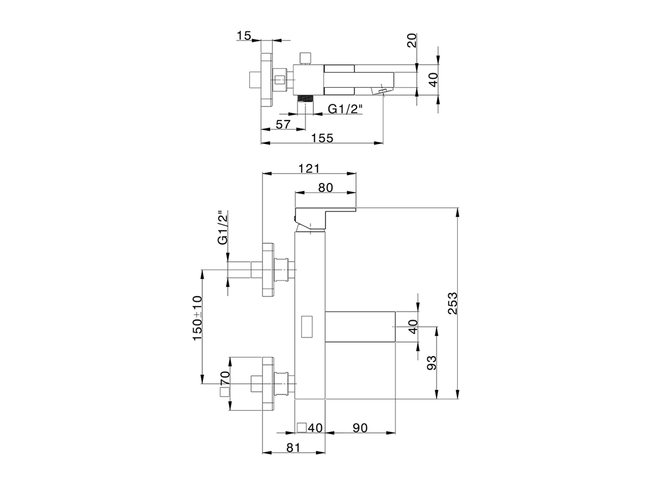 Single lever bath mixer,without shower set,1/2" M flexible connection