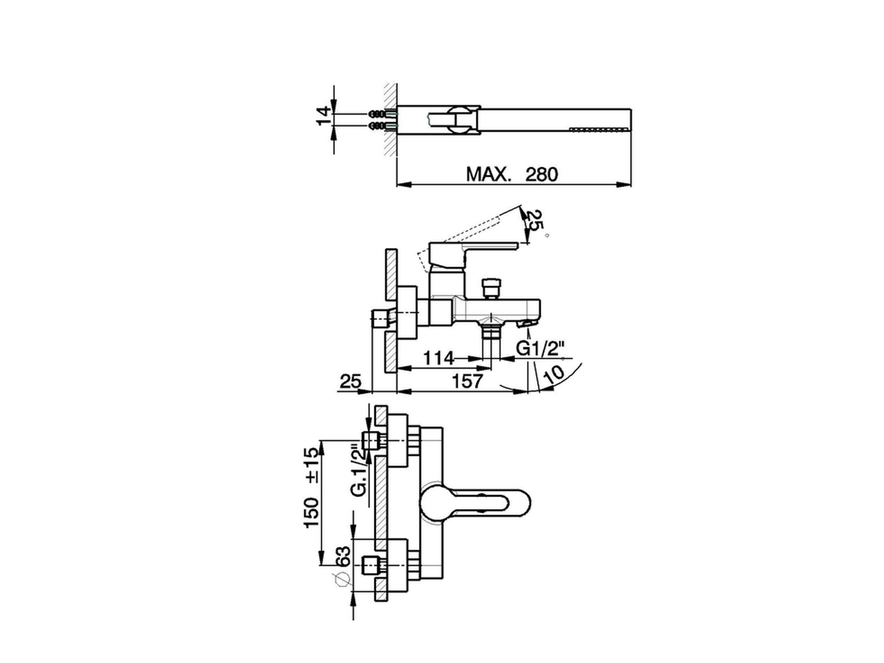 Single lever bath mixer, with shower set,wall mounted adjustable handshower bracket,ABS D.26 mm minimalistic one spray handshower,Brass 150 cm flexible hose