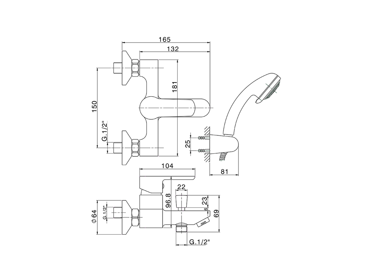 Single lever bath mixer, with shower set,wall mounted adjustable handshower bracket,Teti ABS 3 sprays handshower,150 cm Stainless Steel flexible hose