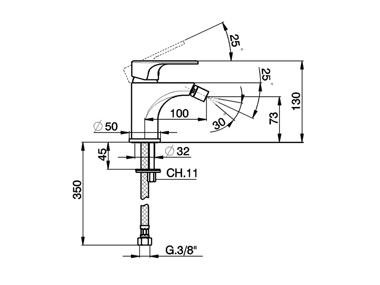 Single lever bidet mixer,without pop up waste,G.3/8" Stainless Steel Flexible