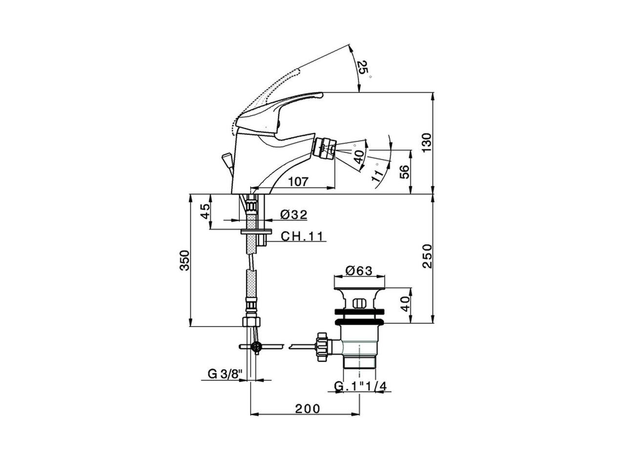 Single lever bidet mixer,with 1"1/4 automatic pop-up waste,G.3/8" stainless steel flexible hoses