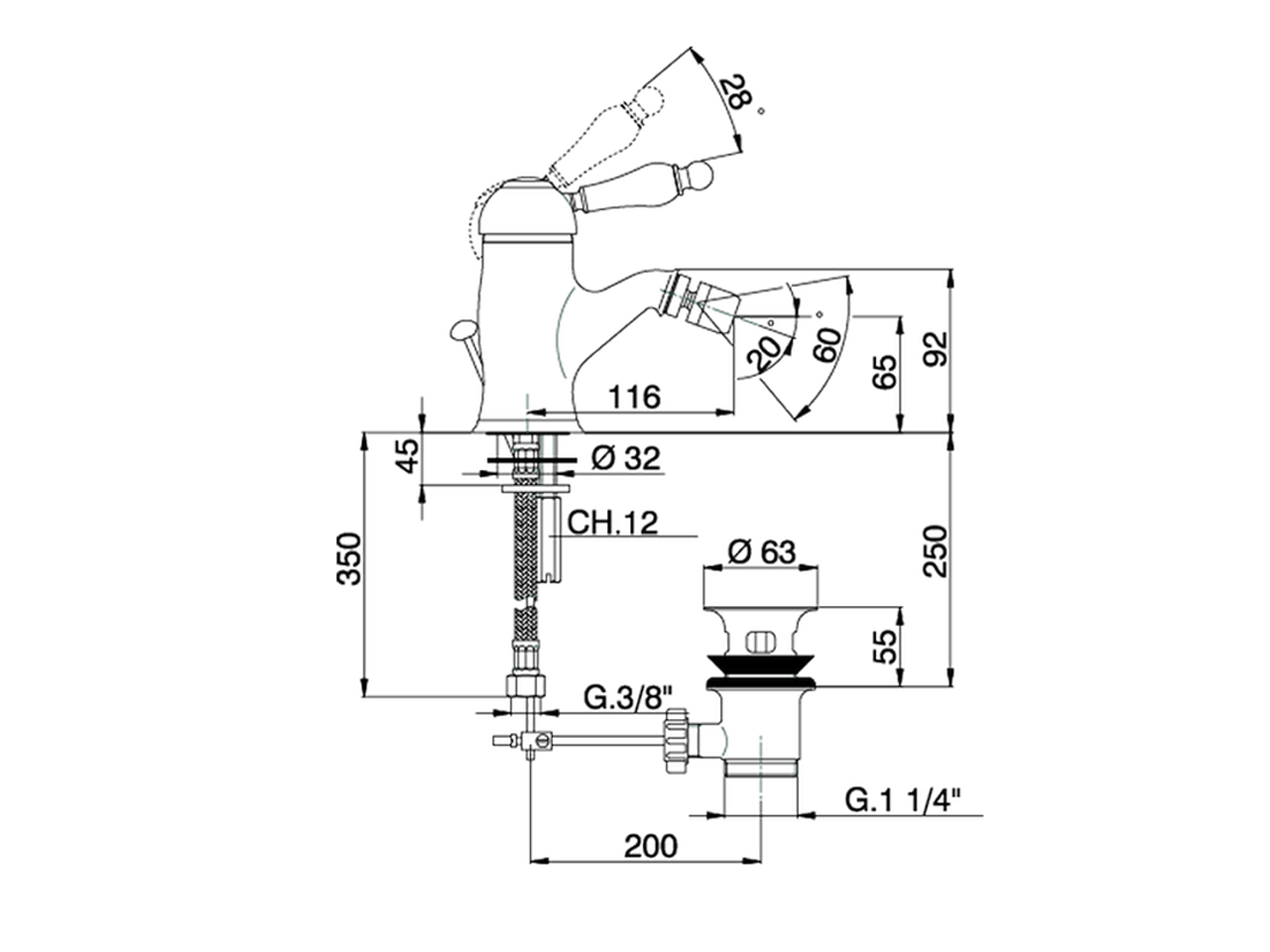 Single lever bidet mixer,with automatic 1"1/4 automatic pop-up waste,G.3/8" stainless steel flexible hoses