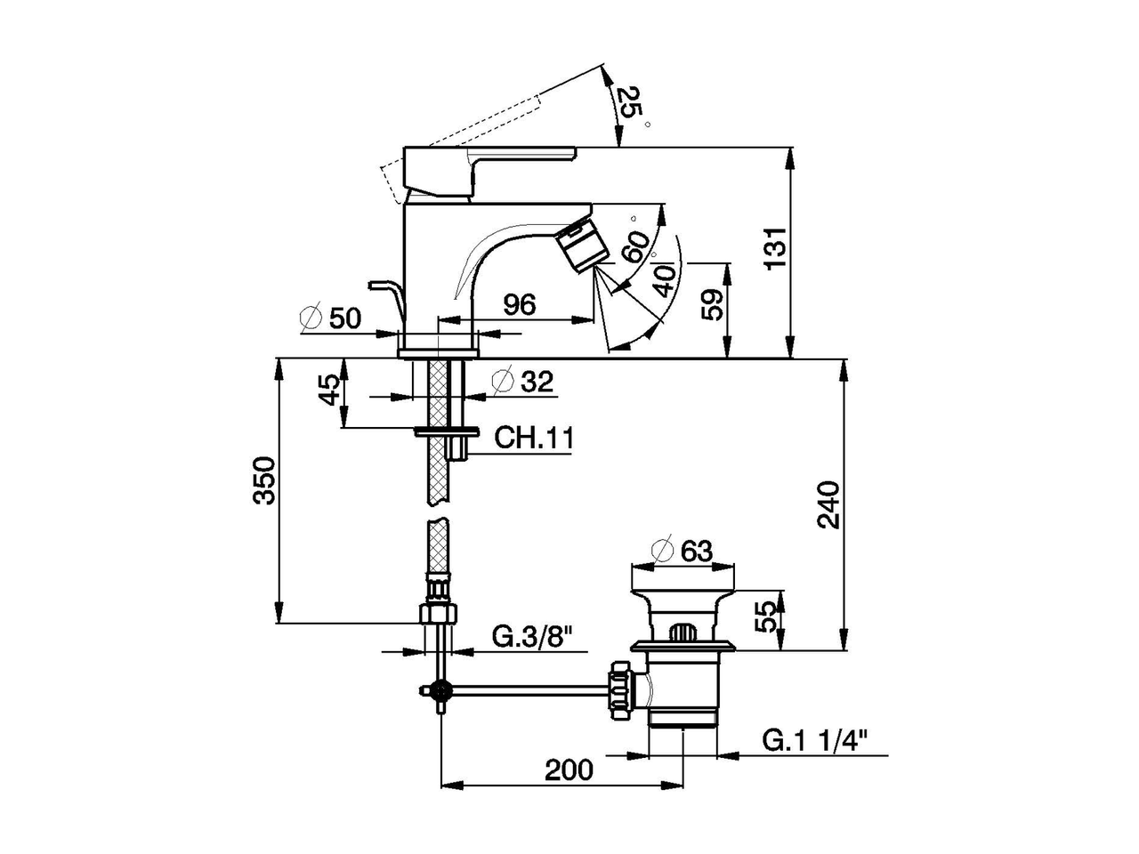 Single lever bidet mixer EnergySave,with 1"1/4 automatic pop-up waste,G.3/8" stainless steel flexible hoses