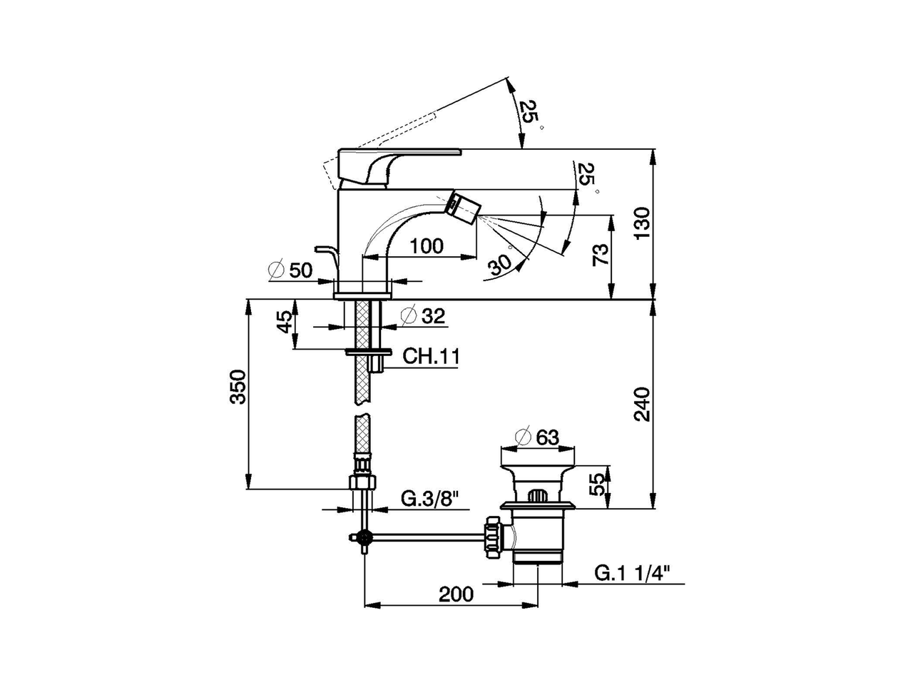 Single lever bidet mixer,with 1"1/4 automatic pop up waste,G.3/8" stainless steel flexible hoses