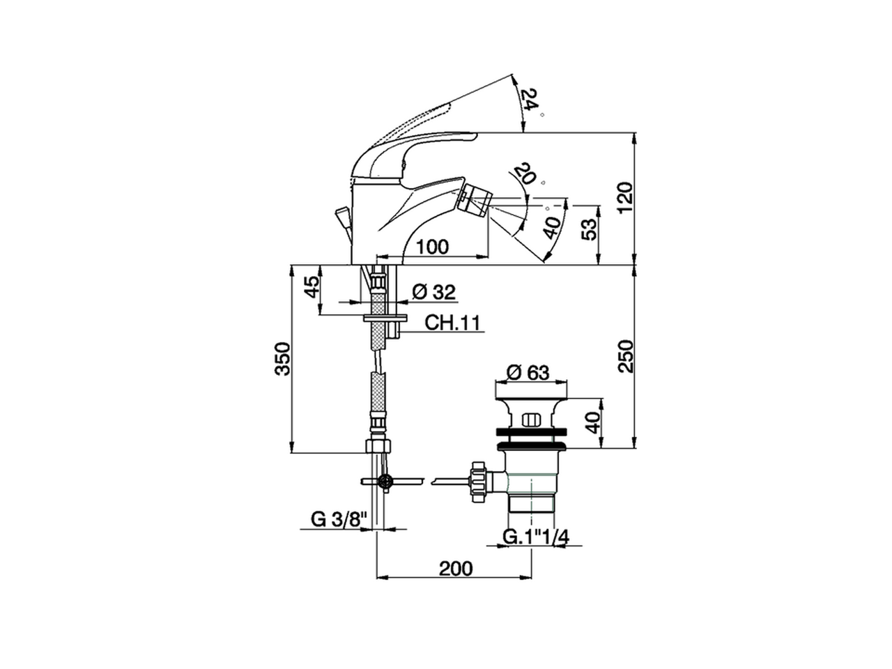 Single lever bidet mixer,with 1"1/4 automatic pop up waste,G.3/8" stainless steel flexible hoses