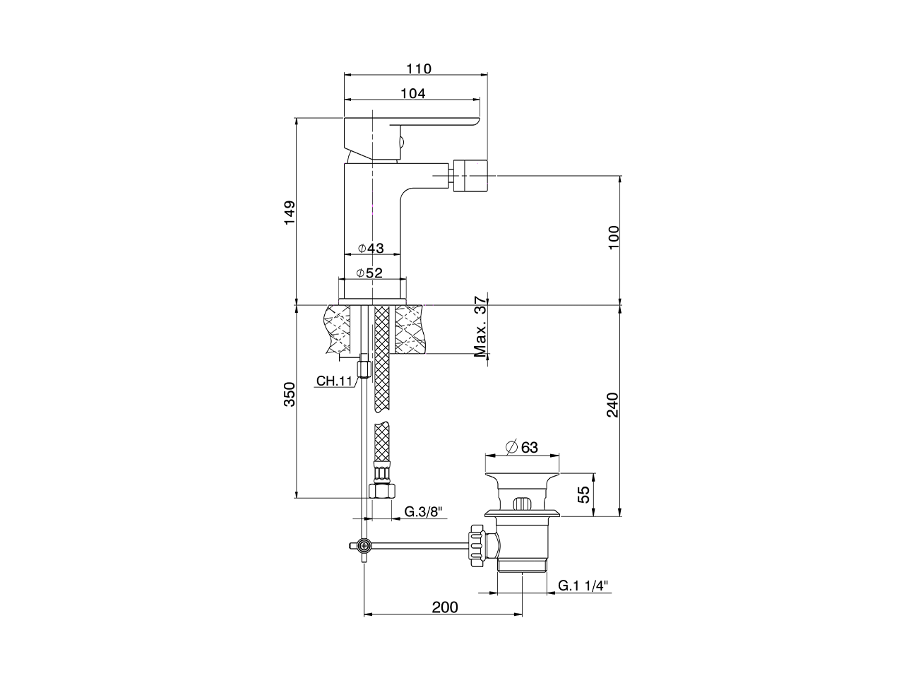 Single lever bidet mixer,with 1" 1/4 automatic pop-up waste,G.3/8" stainless steel flexible hoses