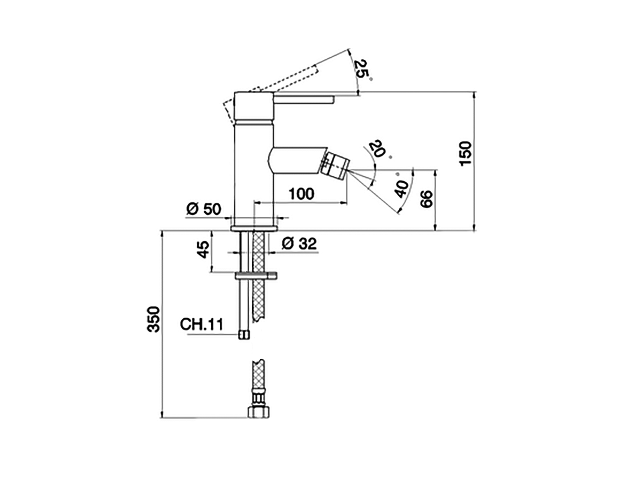 Single lever bidet mixer,without pop up waste,G.3/8" Stainless Steel Flexible