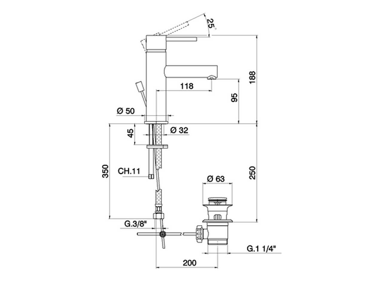 Single lever 'large' washbasin mixer,with 1"1/4 automatic pop up waste,G.3/8" stainless steel flexible hoses
