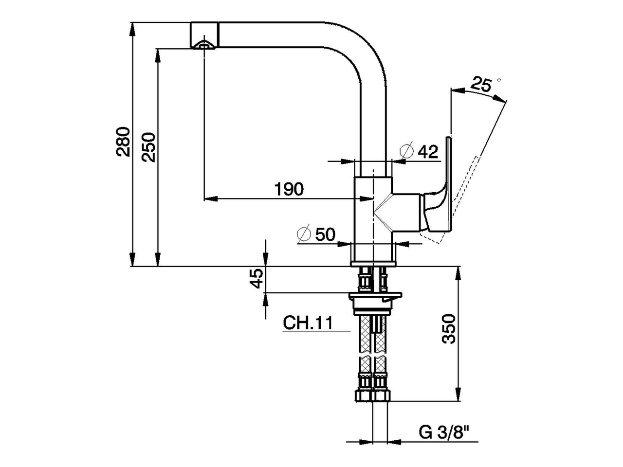 Thanks to the EnergySave device, only cold water will be drawn if the lever is operated in the central position, so that the water heater will not be engaged and no hot water wasted, leading to considerable savings in energy and costs. The temperature can be adjusted by rotating the lever to the left, until the desired temperature is reached.