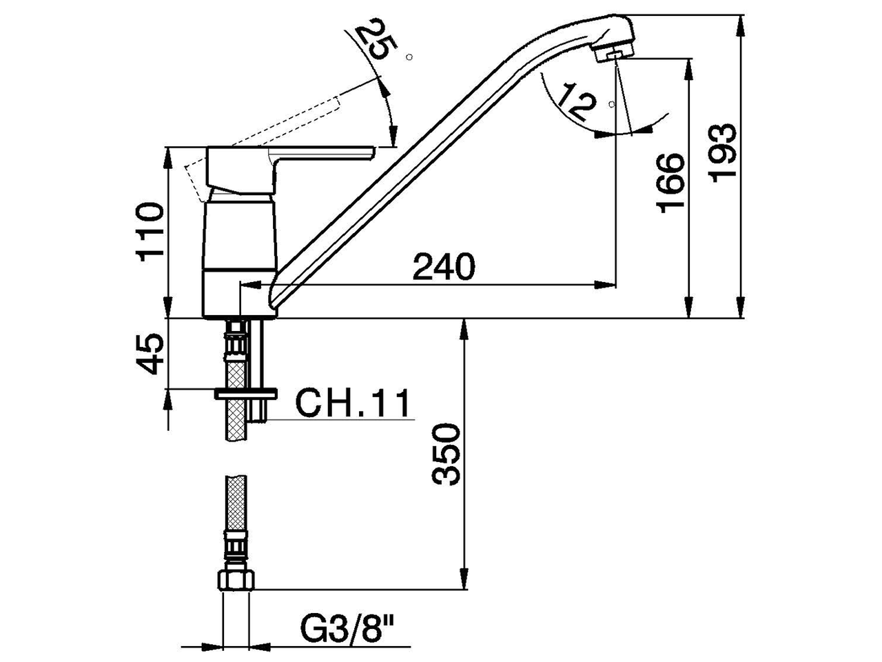 Single lever sink mixer Energysave,swivel spout,G.3/8" stainless steel flexible hoses