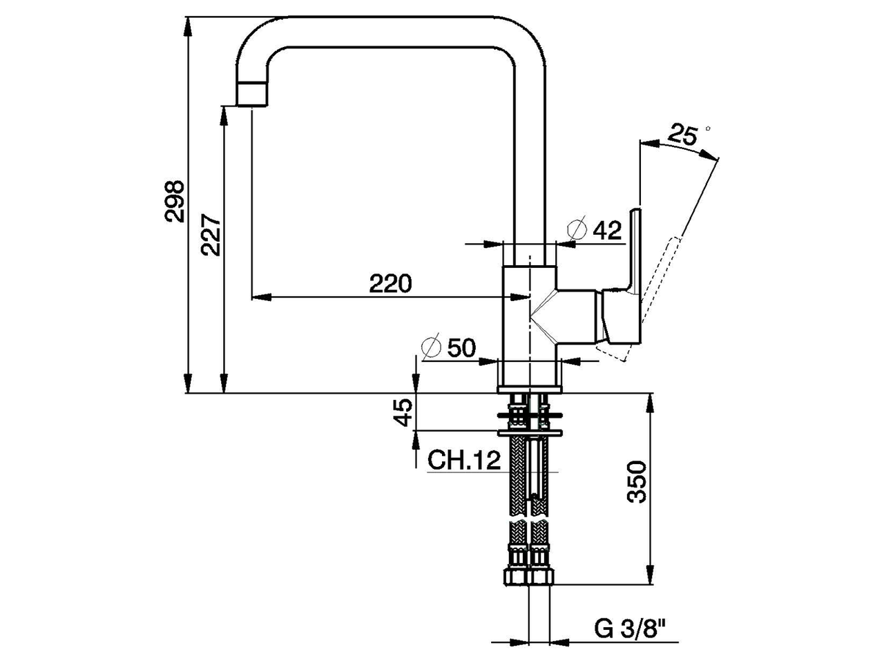 Single lever sink mixer Energysave,swivel spout,G.3/8" stainless steel flexible hoses