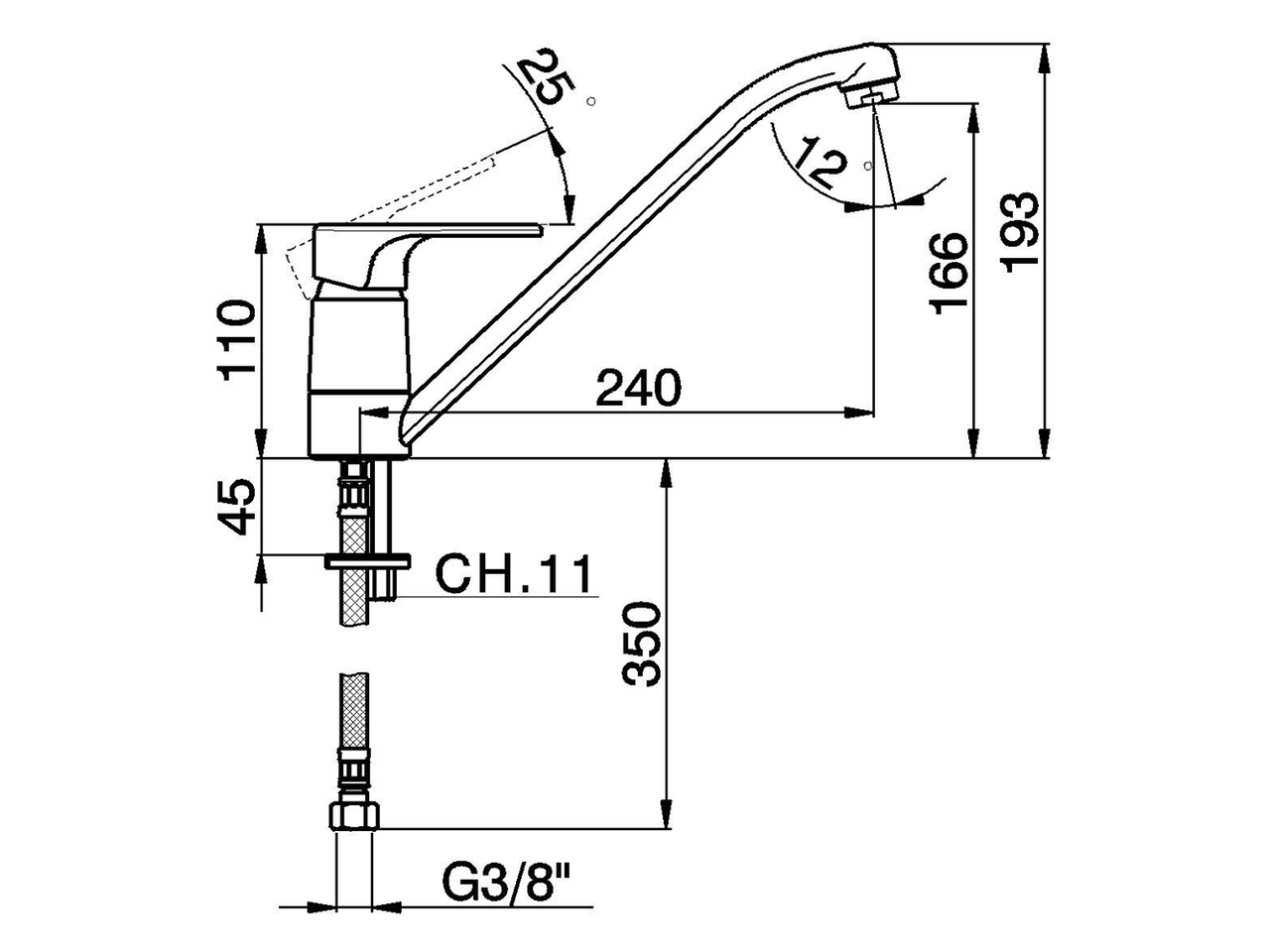 Single lever sink mixer,swivel spout,G.3/8" stainless steel flexible hoses
