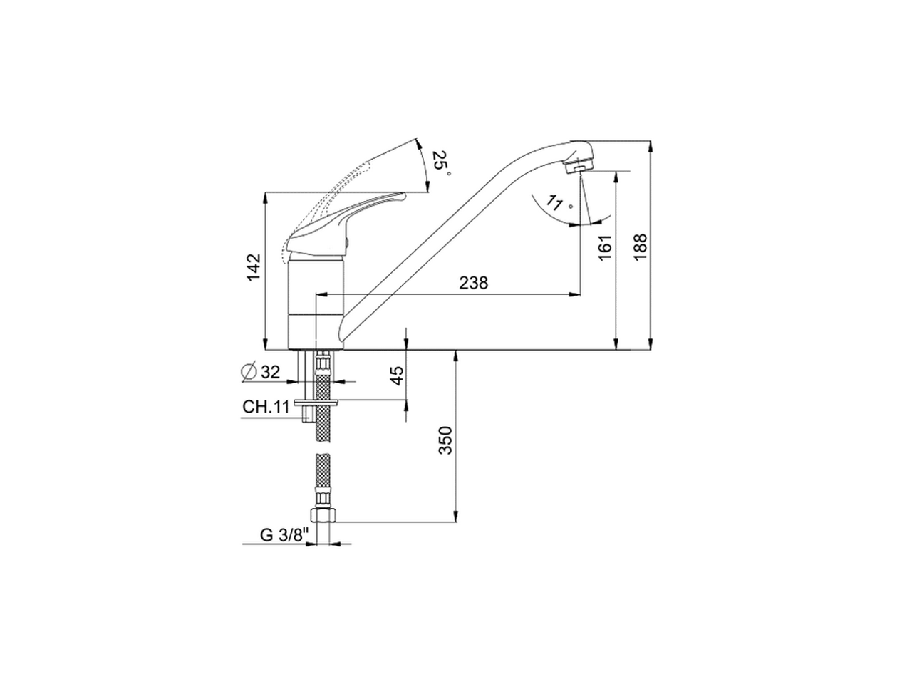 Single lever sink mixer,swivel spout,G.3/8" stainless steel flexible hoses